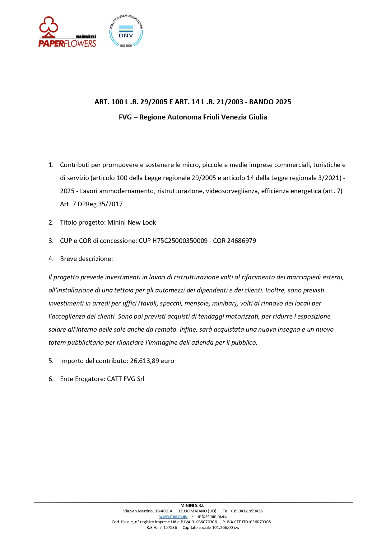 - Contributi per promuovere e sostenere le micro, piccole e medie imprese commerciali, turistiche e di servizio (articolo 100 della Legge regionale 29/2005 e articolo 14 della Legge regionale 3/2021) – 2025 – Lavori ammodernamento, ristrutturazione, videosorveglianza, efficienza energetica (art. 7) Art. 7 DPReg 35/2017